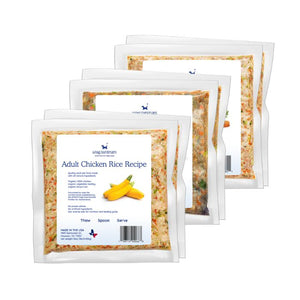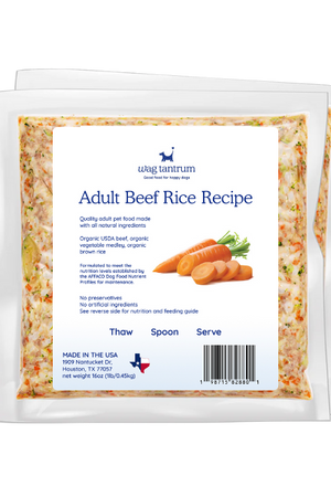 At Wag Tantrum, our ingredients are selected due to their high nutritional value, but immediately after the cooking process is complete, we mix in a blend of pharmaceutical-grade vitamins and minerals to ensure that the food meets AAFCO standards and provides all of the nutritional support your pet needs for a healthy, balanced diet. The food is then quickly frozen to retain its nutritional value and fresh taste.